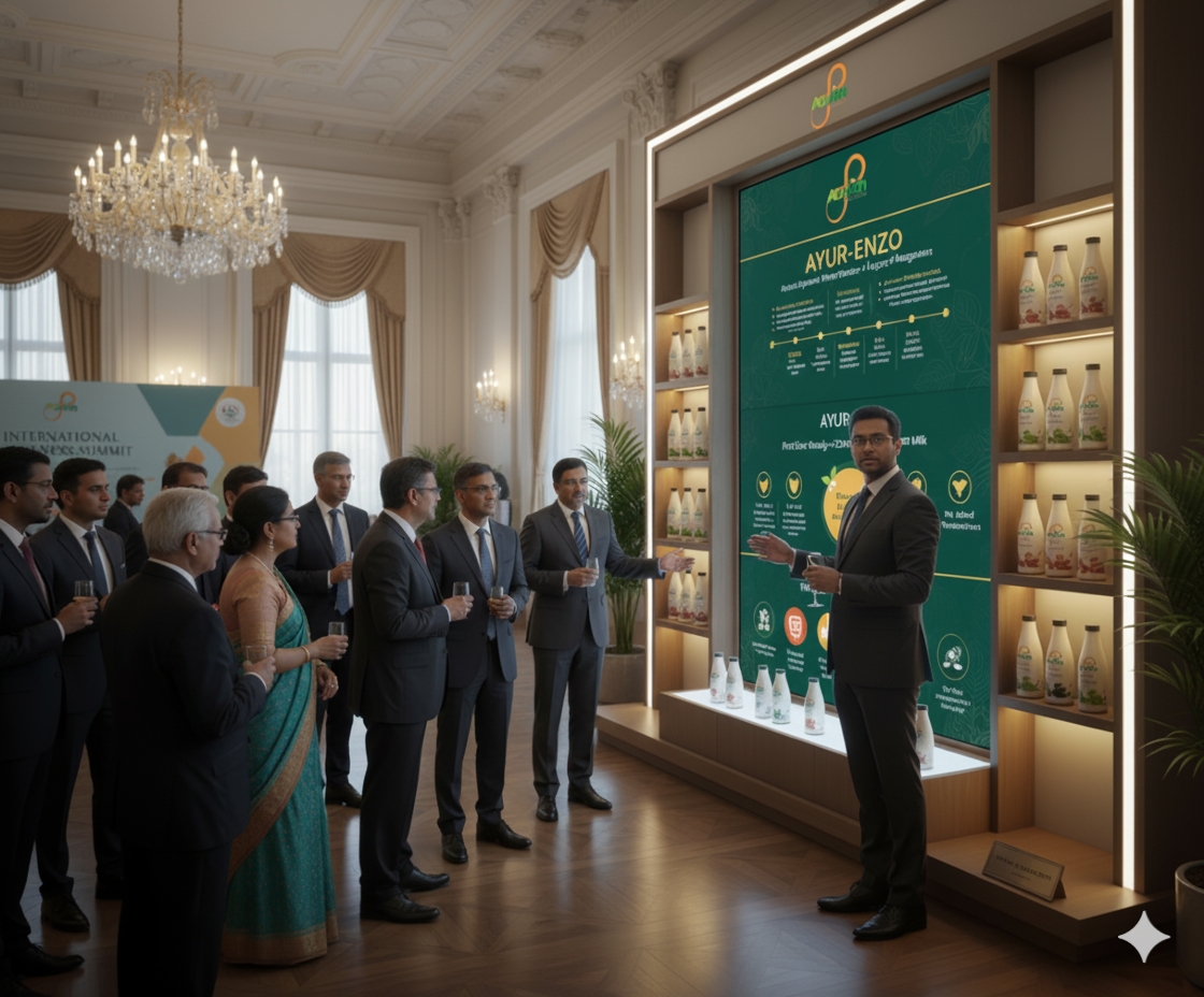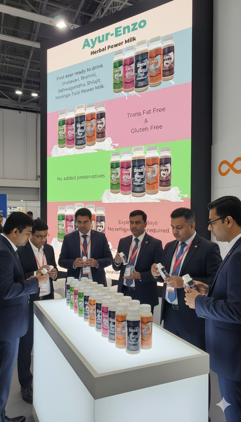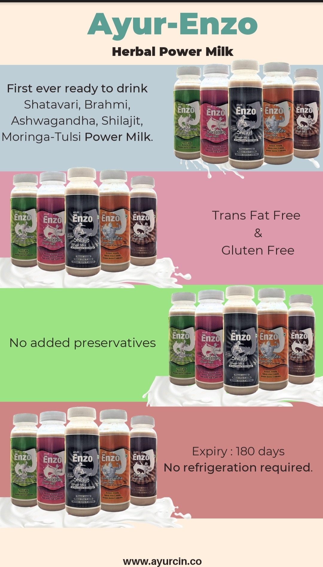 Ayur-Enzo offers a 1-year shelf life without chemicals or preservatives, combining Ayurvedic herbs with fortified milk for lasting nutrition.